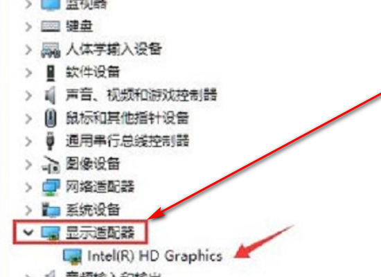 4、进入设备管理器页面之后,点击下面的“显示适配器”,即可查看显卡型号。