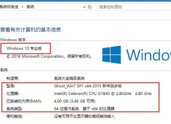 2、进入属性之后,就可以看到处理器等电脑配置了。