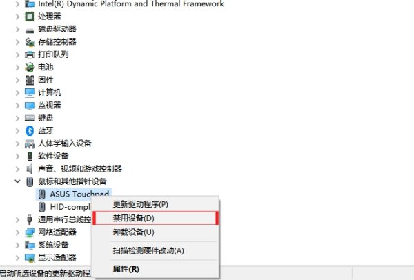 2、控制面板鼠标模块里关闭或禁用触控板。