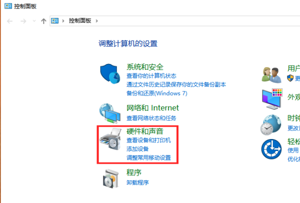 二、然后双击“控制面板”中的“硬件和声音”进入。