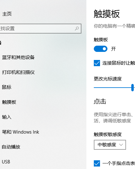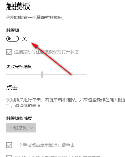 5、接下来在“触摸板”界面可以看到触摸板的开启关闭选项;