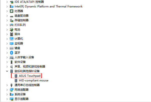 五、然后鼠标右键单击“Touchpad”(“ASUS”仅表示“华硕”的品牌,每个笔记本不一样的,认准第一项“Touchpad”,切忽选择第二项,选择第二项会隐藏光标)。