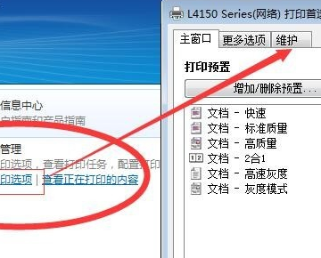 1、首先,点击打印机找到调整打印机选项,选择维护。