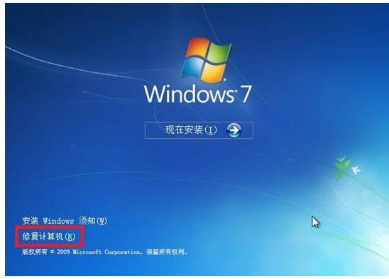 ③ 在Windows安装页面上,找到左下方的“修复计算机”