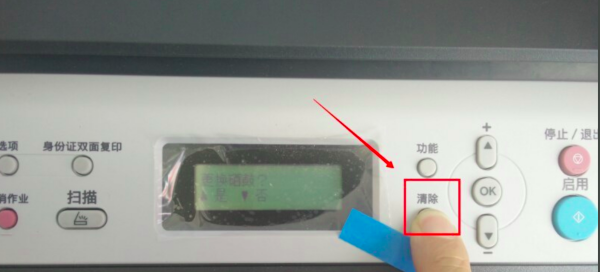 2.长按“清除”按钮等到显示界面出现“更换硒鼓”