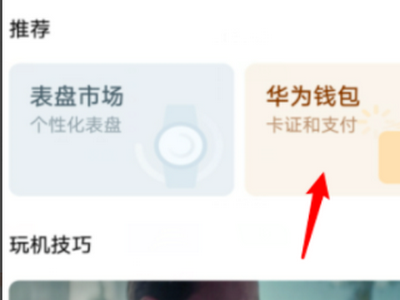 在运动健康 App设备界面,点击已连接的穿戴设备,选择钱包。