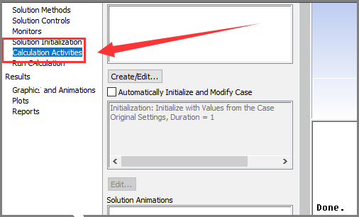 2、在Solution栏下点击“calculationactivities”。再在“SolutionAnimations”下的“Creat/edit...”。如图所示。