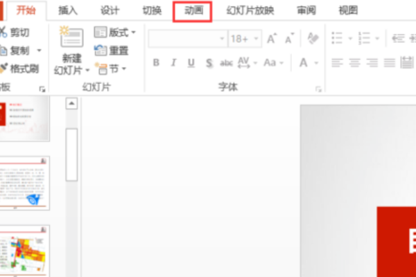 三、然后,在PPT的程序主界面上方菜单中点击“动画”选项,点击打开。