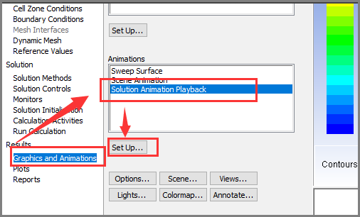 7、计算完了之后,直接依次点击“Graphics and Animations”>“Solution Animation Playback”>"step up..."。