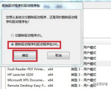 5、在弹出的对话框中选择选中删除驱动程序和驱动程序包,点击确定。