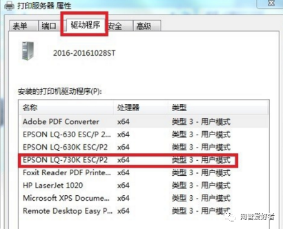 4、在弹出的对话框中选择驱动程序选项卡,然后在安装的打印机驱动程序里面选中要卸载的打印机驱动,点击删除。