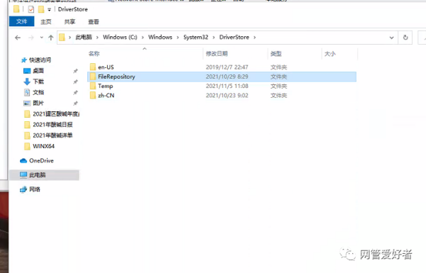 文件夹还原操作:将刚才您解压出的文件中FileRepository里面的所有内容,复制或者剪切并粘贴到 C:\Windows\System32\DriverStore\FileRepository 这个文件夹内。