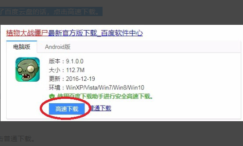 4、如果要下载的是pc版,安装了百度云盘的话,点击高速下载,然后就可以下载了。