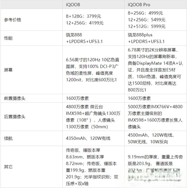 iqoo8和iqoo8pro参数配置对比-iqoo8和iqoo8pro哪个好