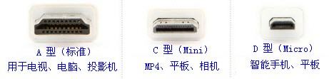 2、常用的HDMI接口有三种规格,样式用途如下图示。其1.4版本接口的带宽支持4K分辨率(4096x2160)数据传输。