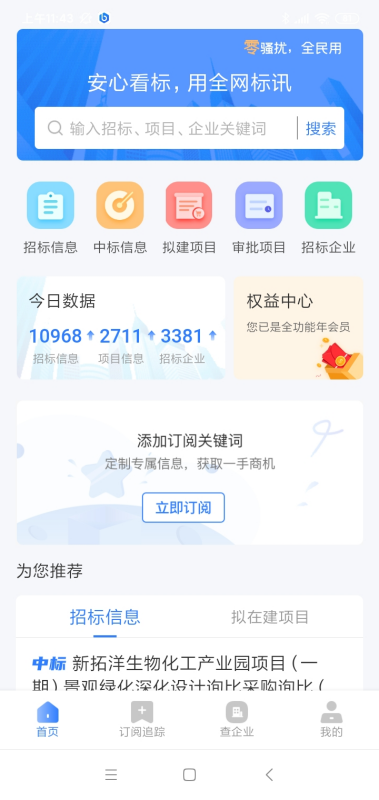 这三个平台功能都是差不多的,可以查招标、查采购、查项目;但是比比好像是没有查企业的功能的,在体验下来,觉得第一个和第二个还是不错的,跟比比招标来对比的话性价比要高一点,功能也很全面,图中也可以直观地看出;而且他们的界面做得不错,比较简洁,一目了然