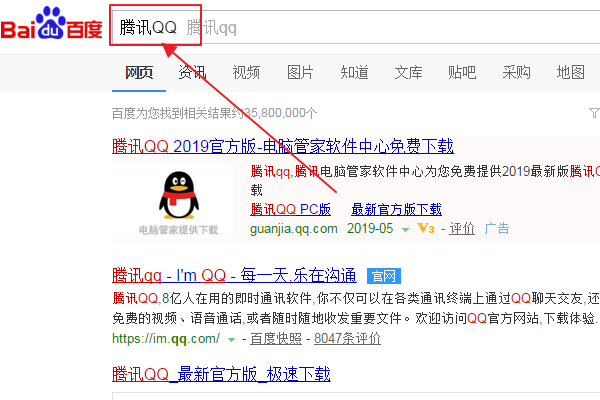 2、输入需要下载的东西名称,例如“QQ”。