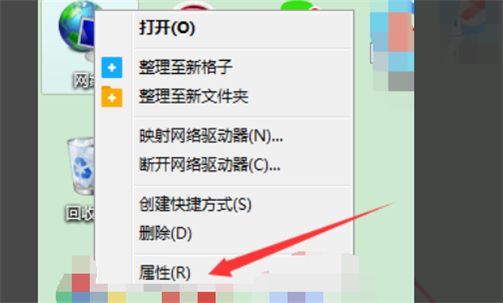 1、首先找到桌面网络图标,右键点击,在下拉选项中选择属性命令。