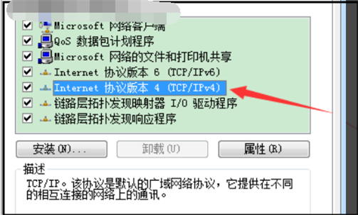 4、打开本地连接属性,下拉选择IPV4,双击打开。