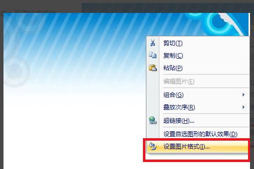 5、在页眉处双击,进入页眉的编辑状态;选中图片,右击鼠标,在弹出的下拉选项中选择“设置图片格式”。