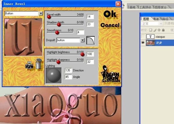 很简单,先打好字,然后把字转成选区,后回到背景层,使用ps插件完成,用图层样式也可以。