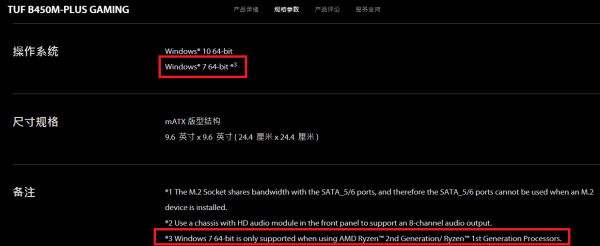 TUF B450M-PLUS GAMING这个主板只有在使用第1、2代锐龙时支持Win7系统,如果使用第3、4、5代锐龙处理器的话就不支持Win7系统。