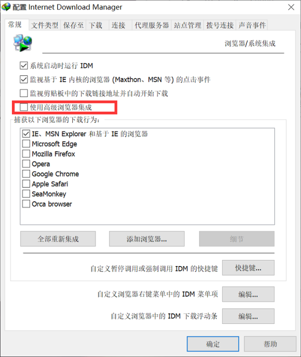 在“常规”界面,取消选中“使用高级浏览器集成”,如图2。