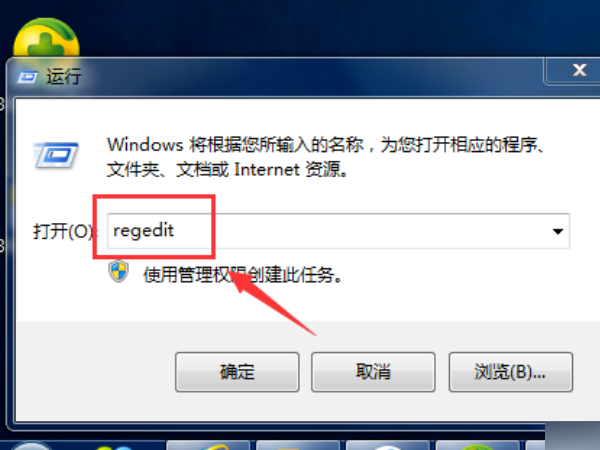 2、然后在出现的运行窗口中,输入“regedit”,进行确定。
