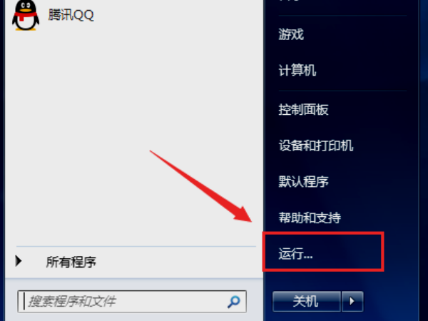 1、首先在电脑的开始菜单中,点击“运行”选项。