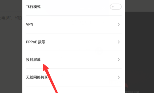 6、打开手机设置,找到“投射屏幕”点击并进入。