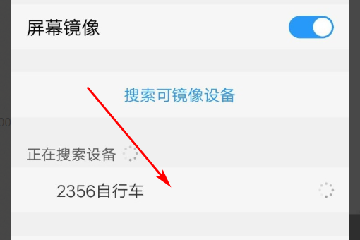 6、开启屏幕镜像开关,点击连接搜索到的设备。