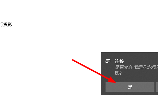 8、点击之后,电脑就会收到是否连接的消息,点击“是”即可将手机投影到电脑屏幕上。