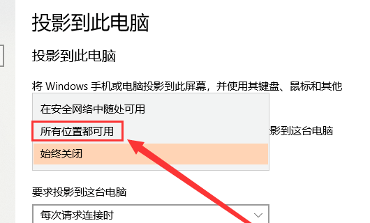 5、进入之后,在图示位置的下拉菜单中选择“所有位置都可用”。