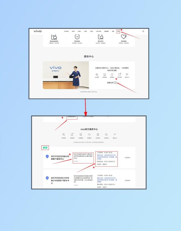 若以上方法未能解决问题,请携带手机和购机凭证前往vivo客户服务中心检测。点击网页链接,选择当前所在的城市即可获取服务中心的地址与联系方式;建议去之前先提前电话联系,避免空跑,合理规划行程,安全出行。