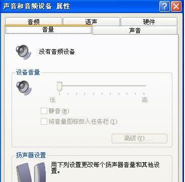 (3)或者打开控制面板,找到声音和音频设备,双击打开,如果出现如下图所示的情况,设备音量这一项都无法调节,音频中默认设备显示没有播放设备、没有录音设备,那么就按照上面的步骤来安装声卡驱动吧。