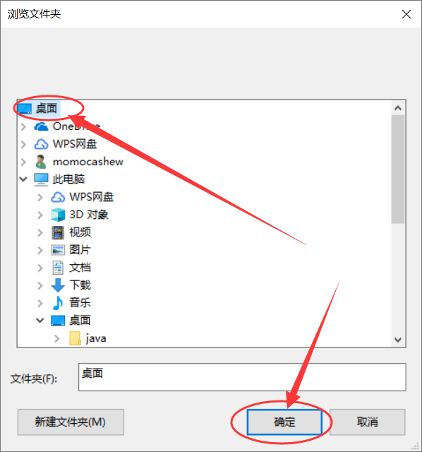 第四步:将路径选为“桌面”,然后点击下方的“确定”。