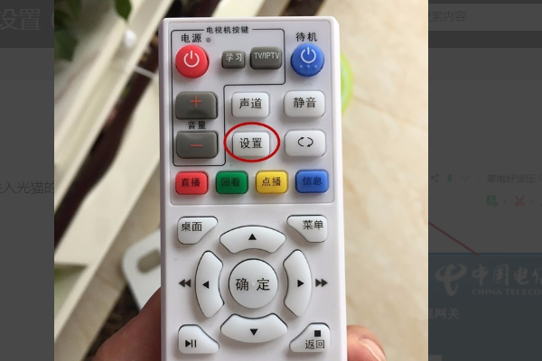 4、光猫设置好之后就可以设置机顶盒了,首先按下机顶盒遥控器上的设置按钮。