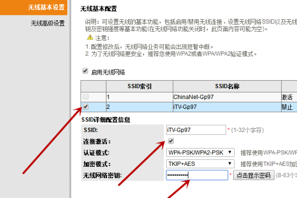 3、勾选ITV选项→点击链接激活→修改无线网络密钥→确定。