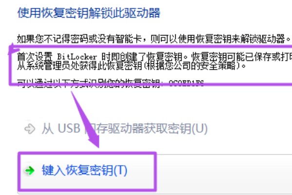 2、然后在打开的页面点击‘键入恢复密钥’选项。