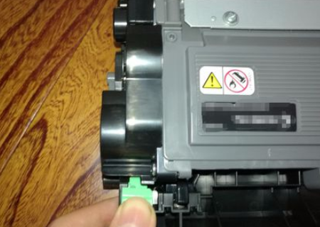 3、接着按富士施乐DocuPrintM205b多功能一体机的硒鼓上的绿色扣将墨盒取下。