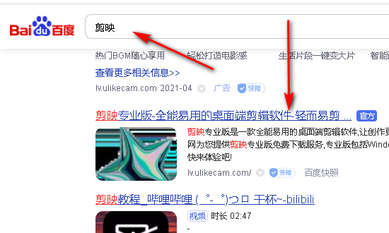 2、打开浏览器之后,搜索剪映,然后进入官网。
