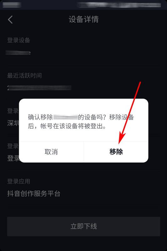 6、进入设备详情页,点击【立即下线】并在之后弹出的确认窗口点击【移除】即可