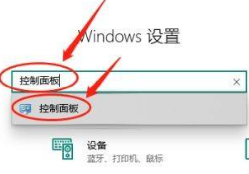 2、搜索框输入“控制面板”——点击“控制面板”。