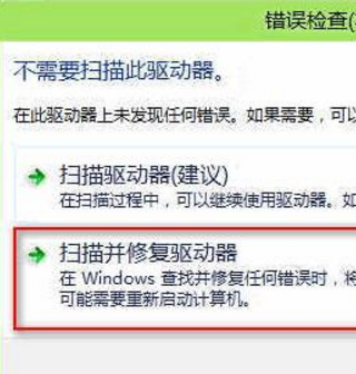 3.点击“扫描驱动器”,等待扫描完成后会弹出如图所示的“扫描并修复驱动器”选项