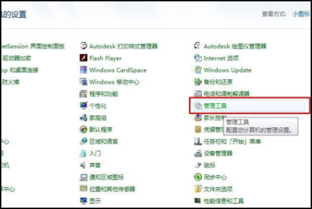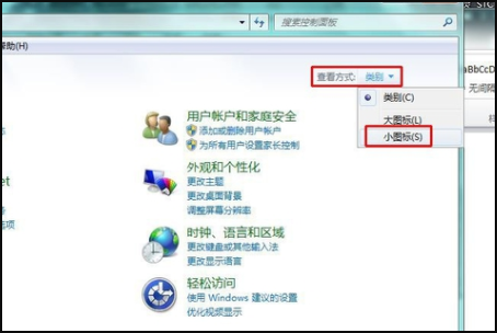 5、待修改完成后,转到‘控制面板’页面,将‘查看方式类别’改为‘小图标’或‘大图标’(以便找到‘管理工具’)。
