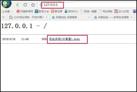 13、或在浏览器输入网址处输入‘127.0.0.1’,回车确定就完成了。