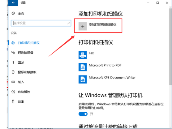 8、然后点击“添加打印机或扫描仪”选项。