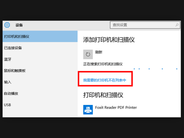 9、搜索之后,点击"我需要的打印机不在列表中"。