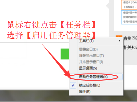 1、鼠标右键点击【任务栏】,选择【启动任务管理器】;