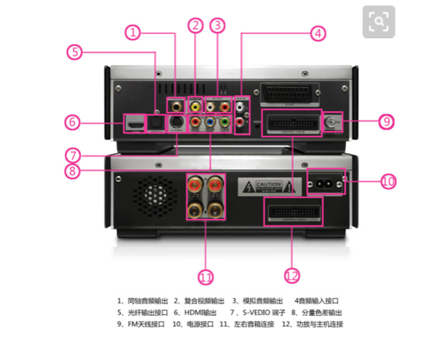 把输入线的绿色一头插入主机后面的绿色孔内,另一头插入功放器的红、白输入孔;左声道白色线、右声道红色线对应插入输出孔的白色孔和红色孔中;最后把低音炮的黄色线头插入输出端的黄色孔。具体方法如下: